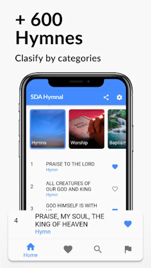 The Hymnal application contains more than 360 hymns and with the following classification: