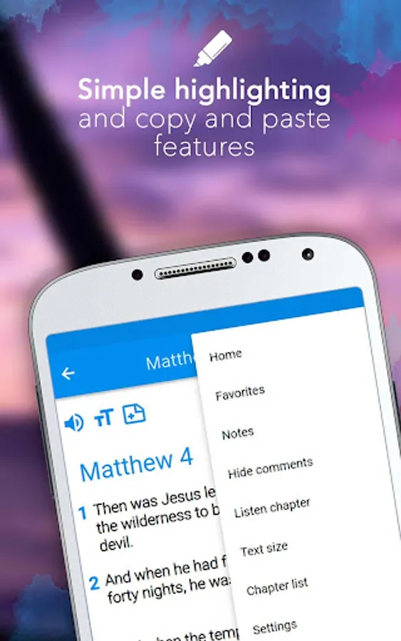 - You can bookmark biblical verses (use colors according to your preference), add them to a favorite list, and write your own notes and thoughts as if it were a book.