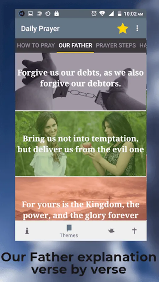 Receive prayers for everyday, daily devotion with the bible verse. Your daily quite time with Jesus on this app. You will find many bible topics and verses, look for holiness and read about repentance. Learn how to pray to God according to the scriptures and receive the bible devotional and the prayer of the day. Inspiring principles that will teach you how to communicate with God and daily pray.
