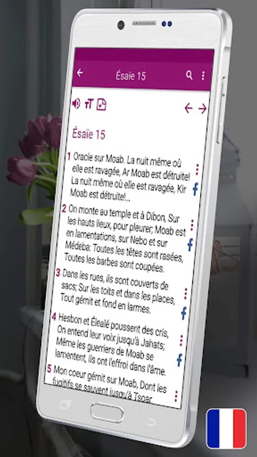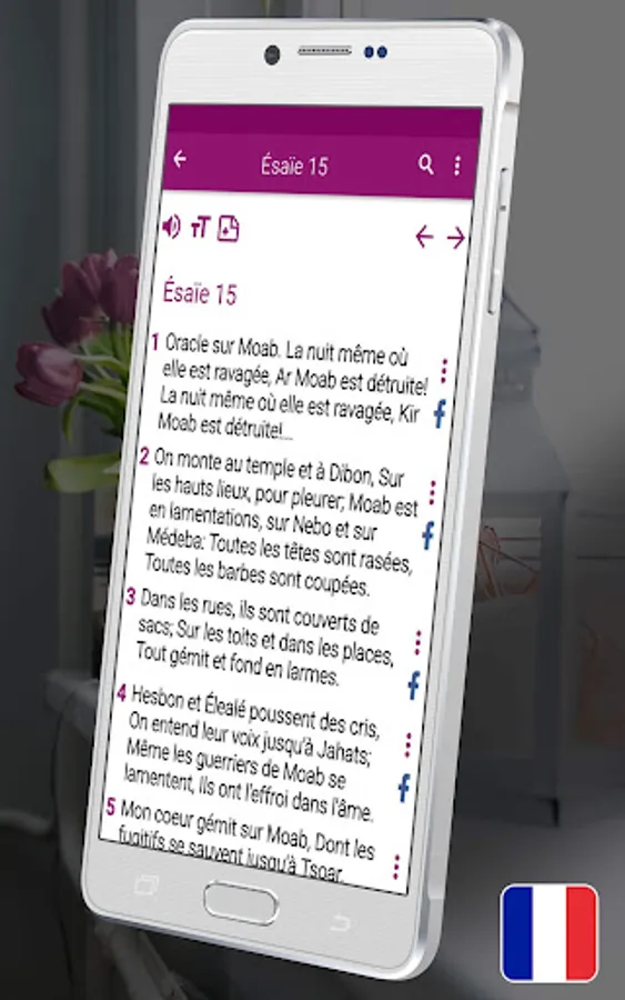 Download the app and listen to the audio Bible in French. You can also change the speed, tone and volume.