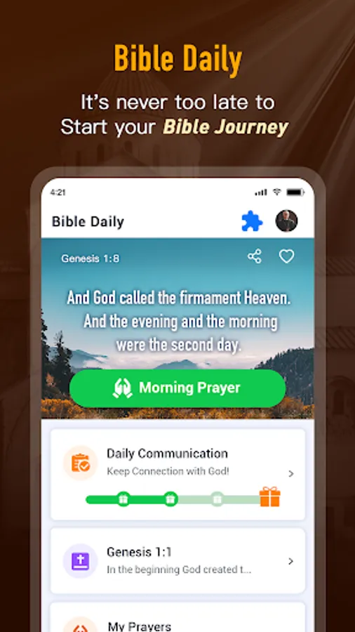 Bible Daily provides a platform for you to engage in morning and night prayers by offering relevant verses and prayers. Additionally, you can communicate with God at any time, expressing what's in your heart.