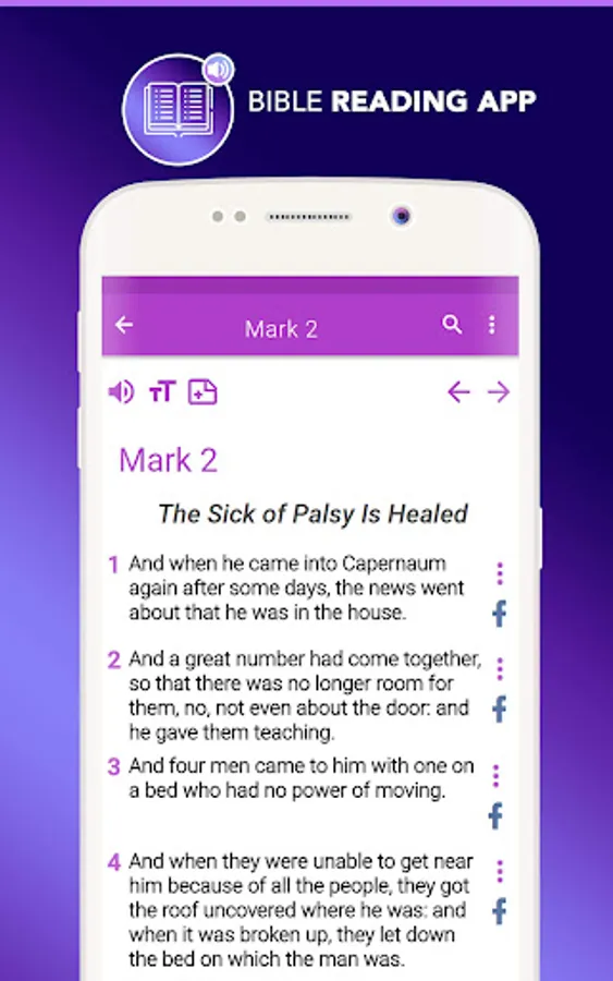 - Share the Holy Word with others: send verses by email, SMS or share them on Facebook or other social networks.