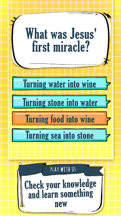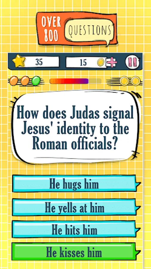 Do you always make time for daily devotional readings? Have you never missed a Sunday service and you know all Christian Sunday school songs by heart? If your answer is yes, then you are a perfect candidate for this smart Bible app. Test your Bible IQ by taking religious education quiz and answering biblical questions and answers. This Christian Bible quiz is an excellent brain exercise and memory booster. Name Christian saints and hymns, guess the quote, recite Bible chapters and verses and prove that your Christian faith is strong! Can you name the first five books from the Old Testament starting with Genesis and Exodus? Do you know the story of Samson and Delilah, David and Goliath, Cain and Abel? Play this interactive offline Bible quiz game with both easy and difficult questions!