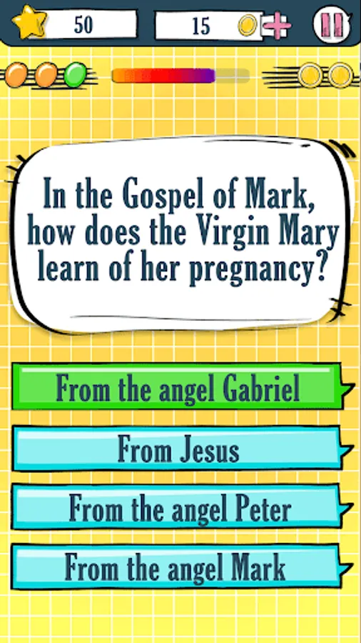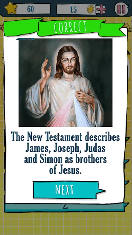 Download Holy Bible Quiz Game – Old and New Testament and begin your religious journey. It's a fun and entertaining Bible GK quiz that will keep you engaged the whole time. It's an ideal Bible study with questions and answers suitable for all age groups. It's a Bible trivia game for adults, but also Bible study app for preschoolers, teenage girls, boys and everyone who wants to test and expand their Bible knowledge. How many books of Matthew are there? Do you know the biblical stories of Adam and Eve, Jacob and Joseph, Noah's Ark? Play holy Bible quiz with your Christian youth group friends and see who remembers the most about the Word of God from the Sunday mass readings!