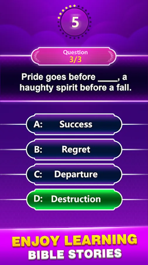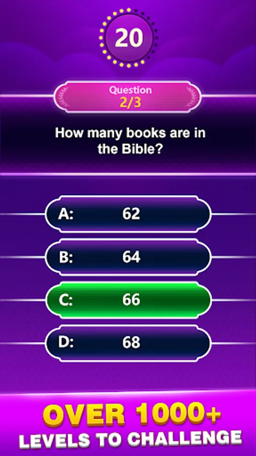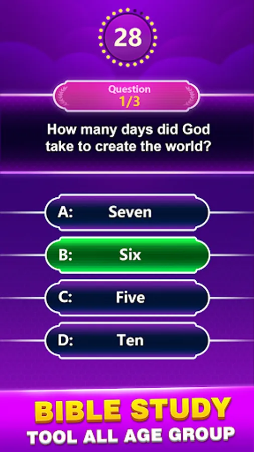 Warning: Risk of getting addicted! Once you start beating levels, you won’t be able to stop! In Bible Trivia you can study the holy book by level, and become knowledgeable Bible scholars as you play in a short time! Bible Trivia is made to test your knowledge of bible and learn more about Bible in a fun way.
