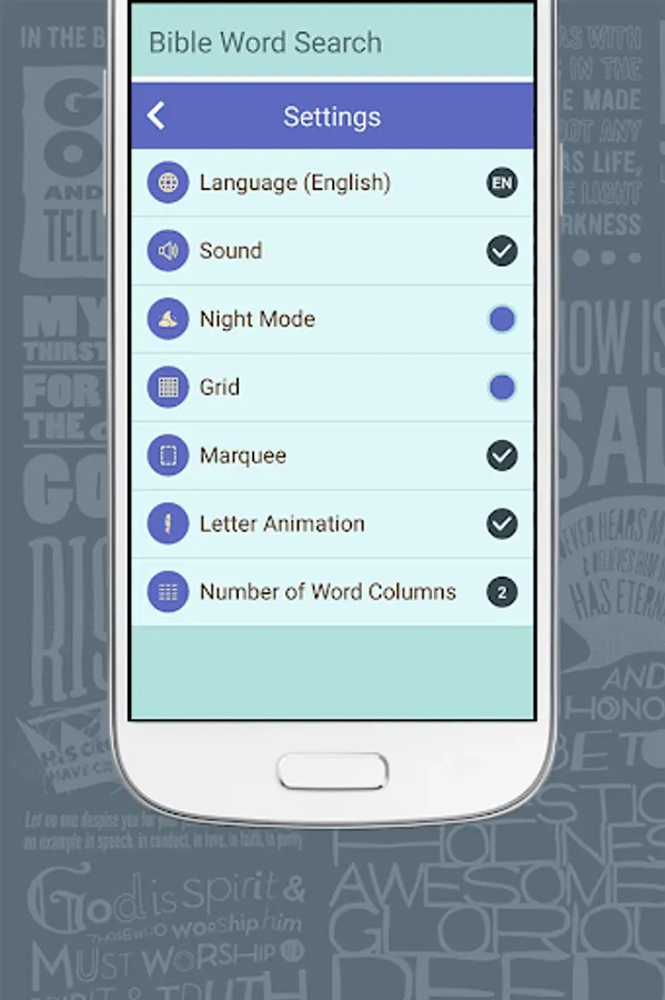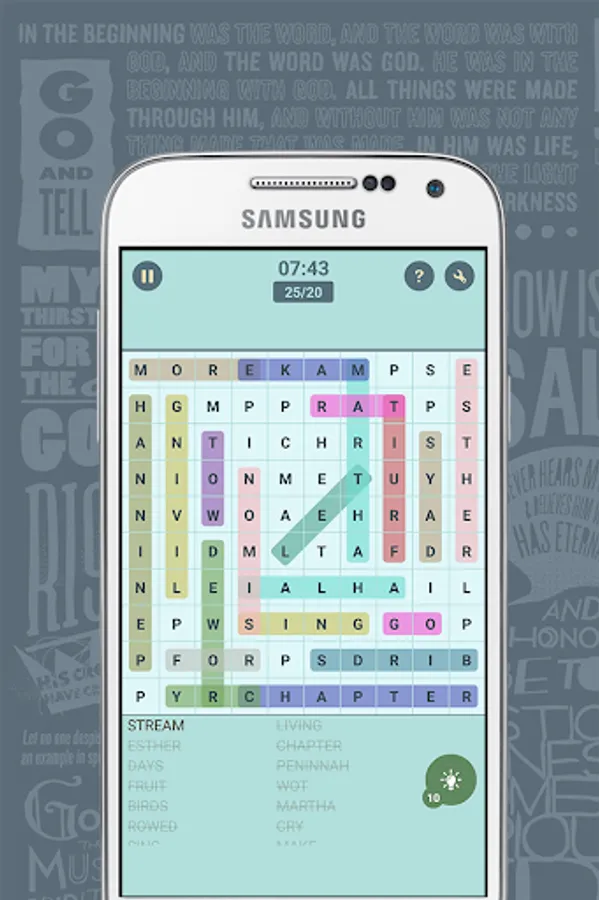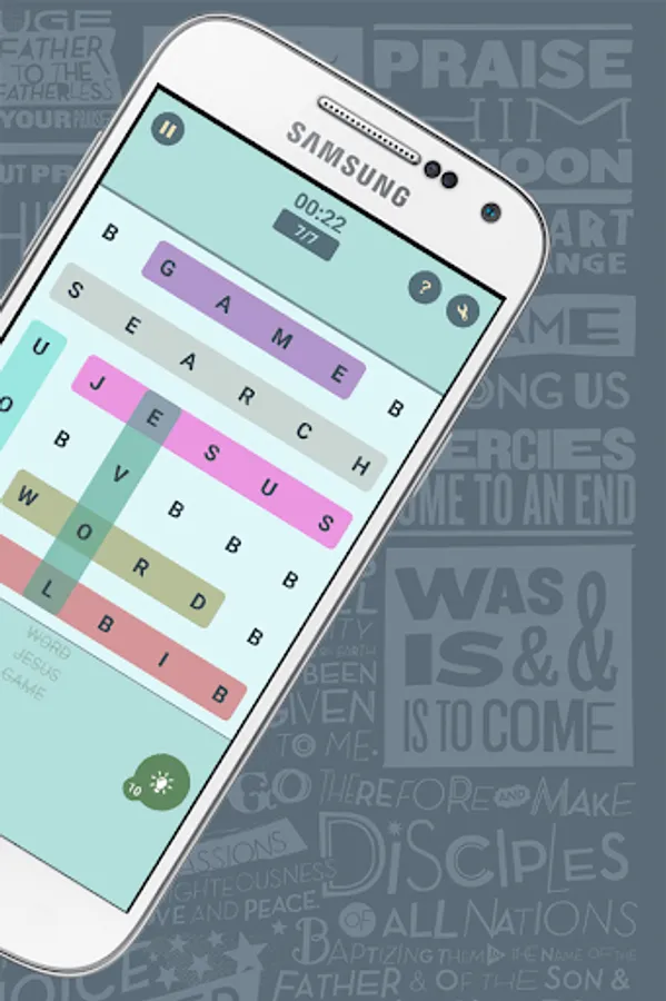 If you're looking for cool word games, Bible Word Search is the game for you! You will enjoy a fun challenge as you identify God's hidden words and then swipe up, down, left, right or diagonally to mark them. It's a fun way to refine your Bible knowledge, spelling and puzzle skills. The game has 9 difficulty levels you can select, from easy to extremely difficult.
