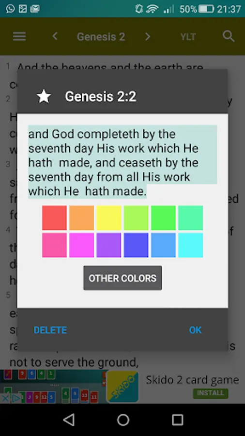 When verses are particularly meaningful, you may wish to use the highlight feature to mark the text. There are multiple colors available. You could add colors to highlight texts on a particular topic, or add colors to show verses which indicate a favorite promise.