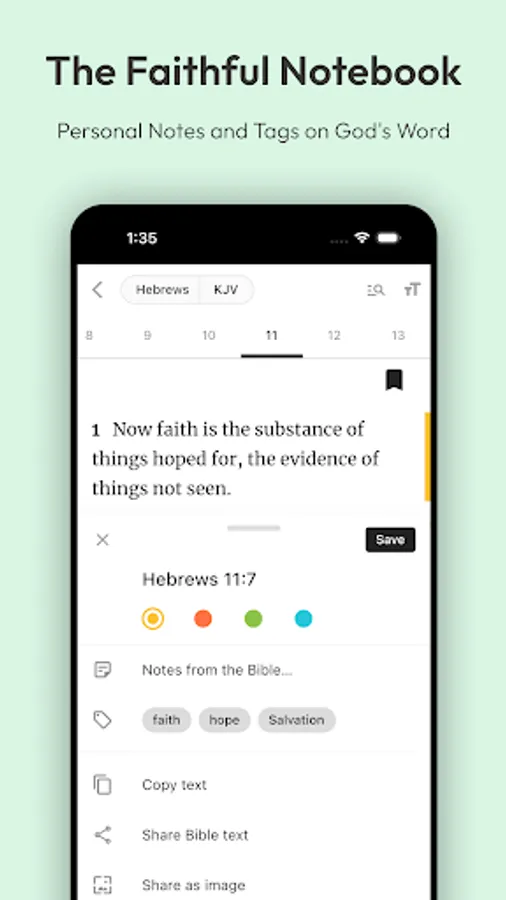 Customize your Bible with Color, Notes, Highlights and Bookmarks. Download Bible versions to read online and offline. Create and share Bible verses with images.