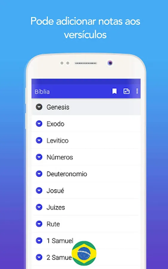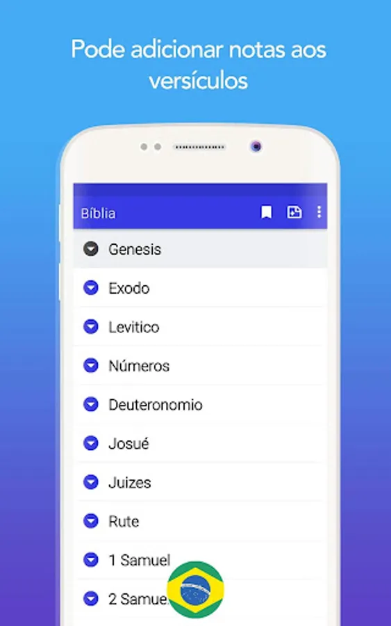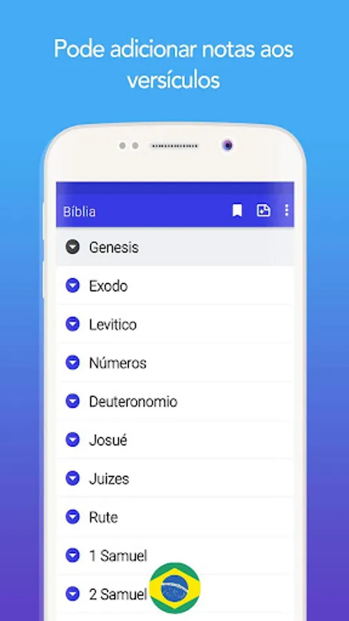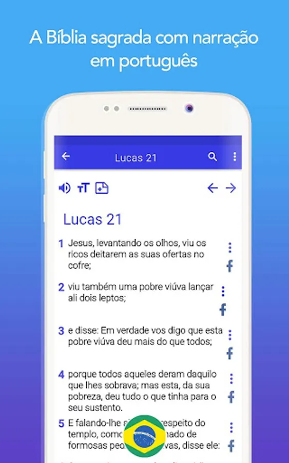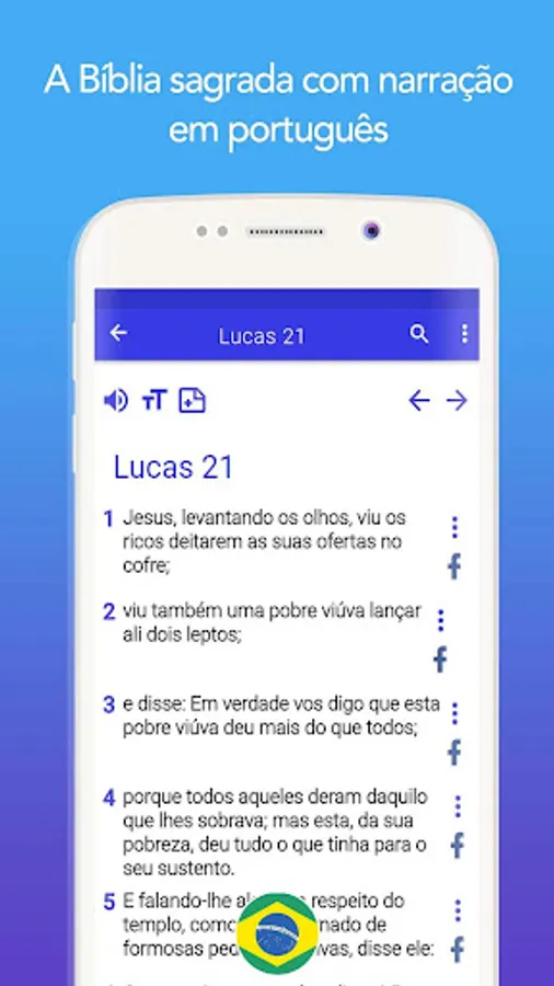 The application presents the Portuguese translation of the Bible, in the King James Version João Ferreira version (JFAA).