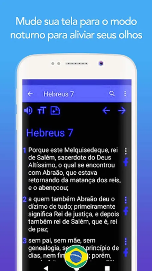 • Change the font size can bring more comfort while reading the Bible. (The application offers seven sizes to choose from)