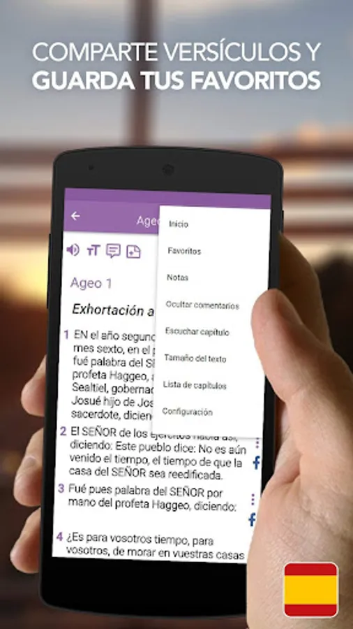 With our app, you can bookmark and save verses, create a favorites list, add notes, change the text font, darken the screen with night mode, receive inspirational verses and much more.