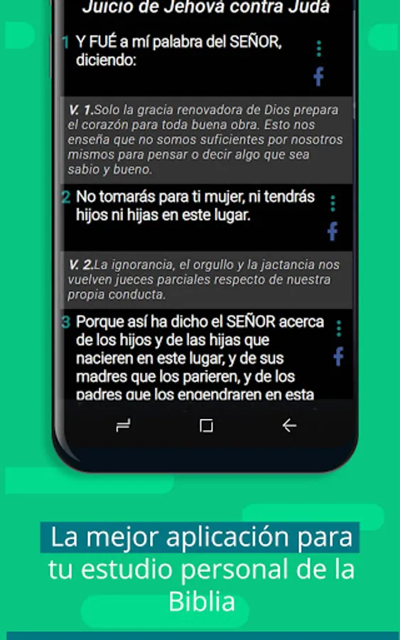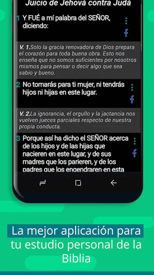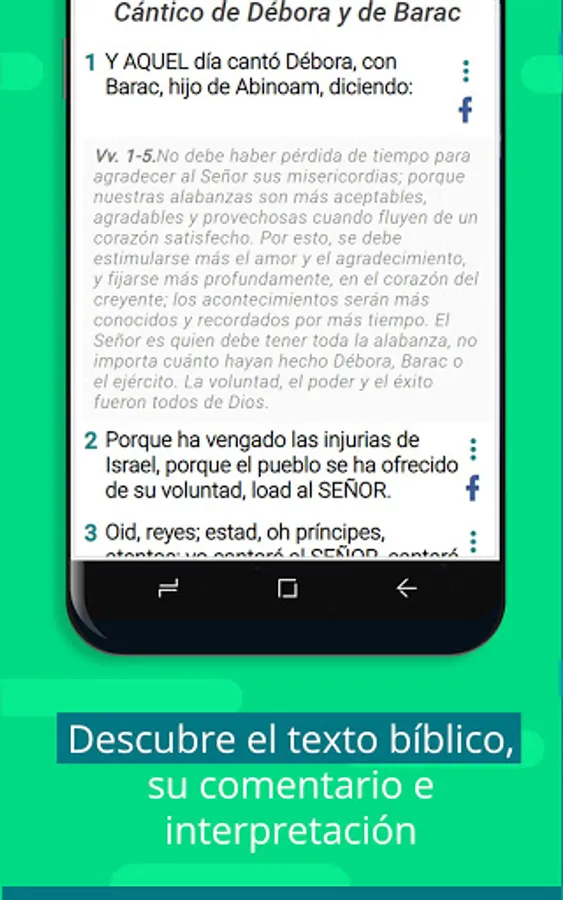 Most gratifying, with our app you can share the Word of God. When you are listening or reading, you will surely feel that need to share with those you love the treasures you are discovering. For that, our app has a direct access to Facebook in each verse to be able to share, publish or send edifying words to your friends that will change their day.