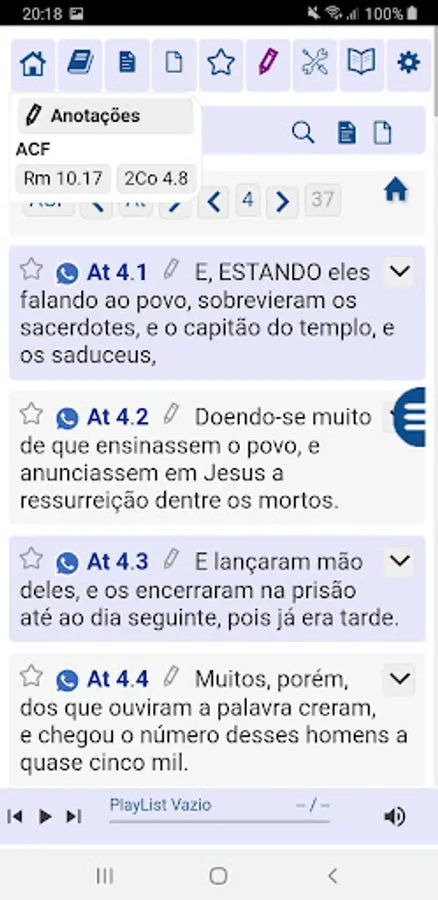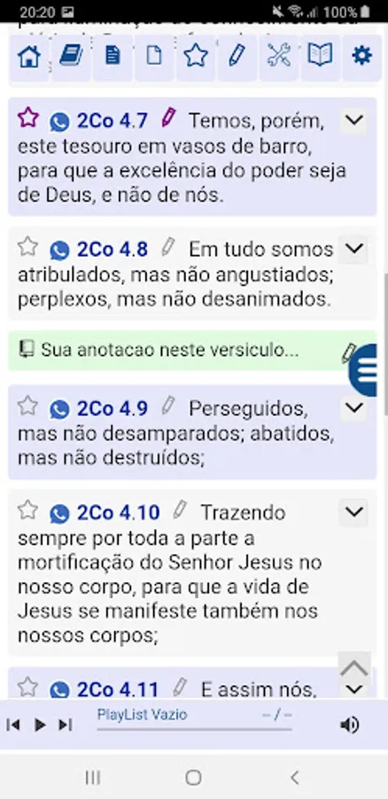 Make, change or delete your personal notes on each verse. You can share verses with your notes on WhatsApp.