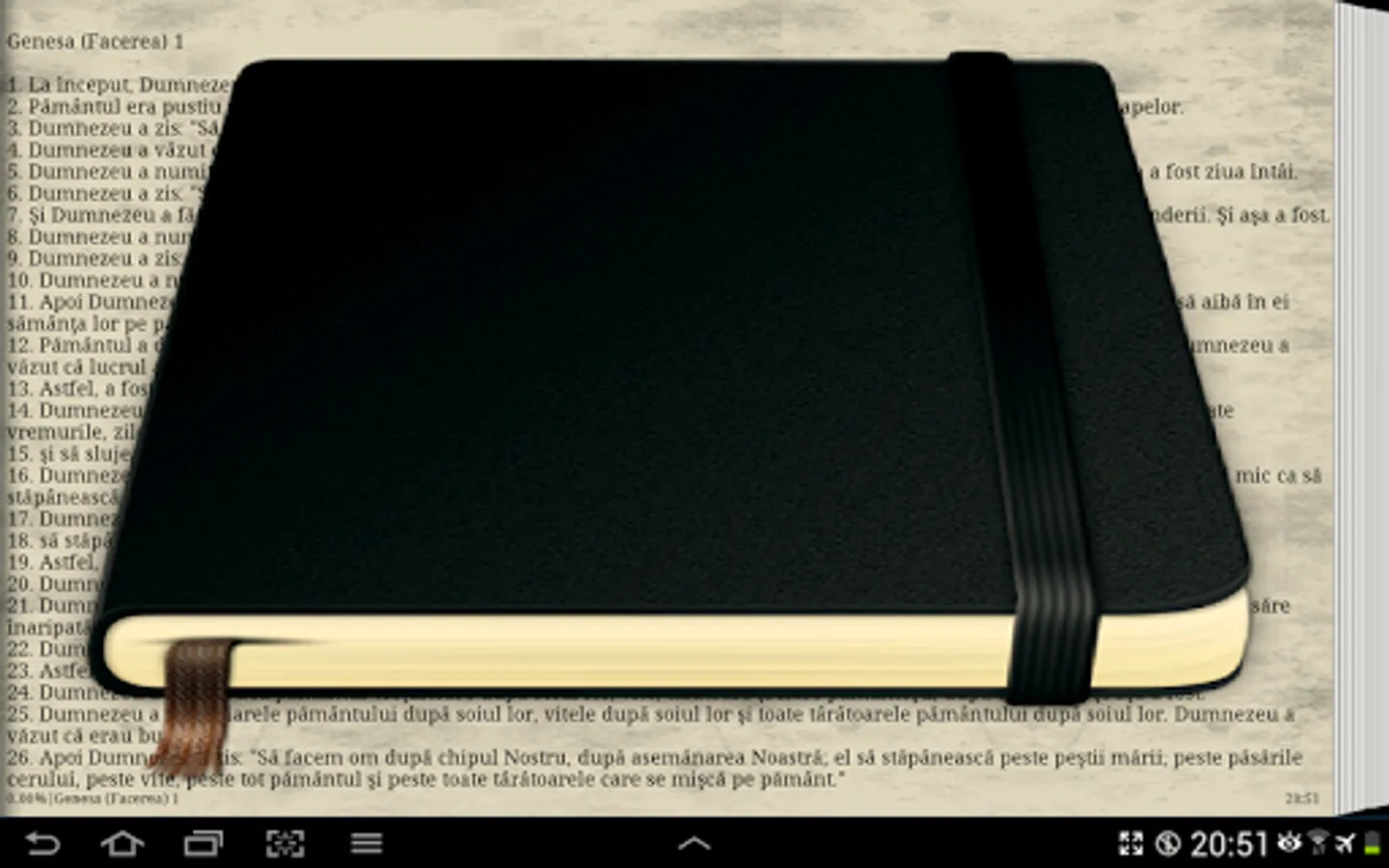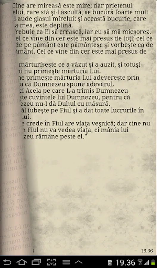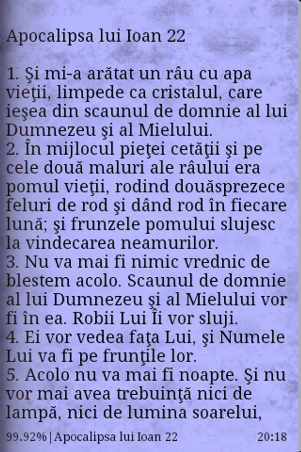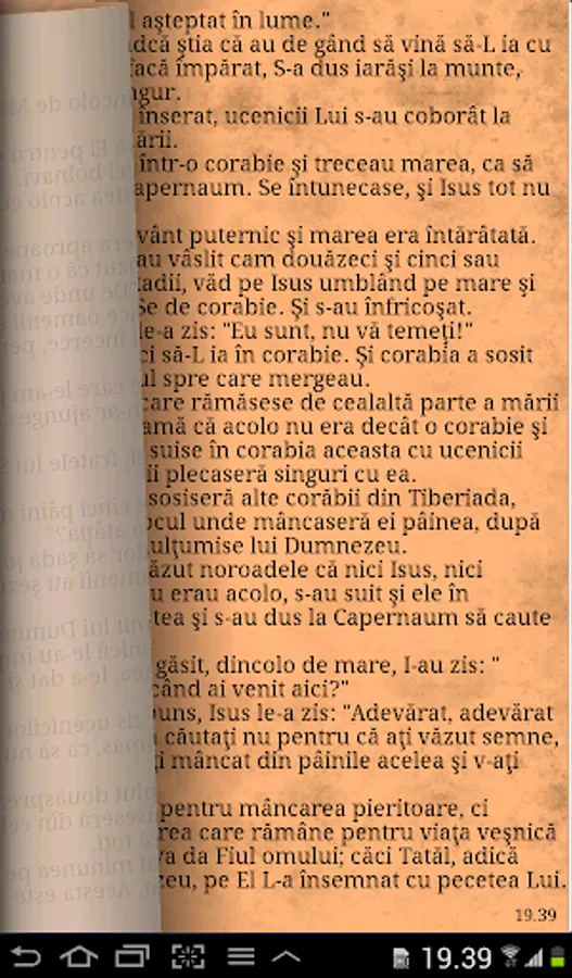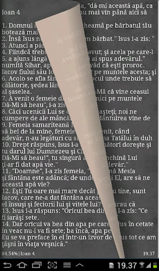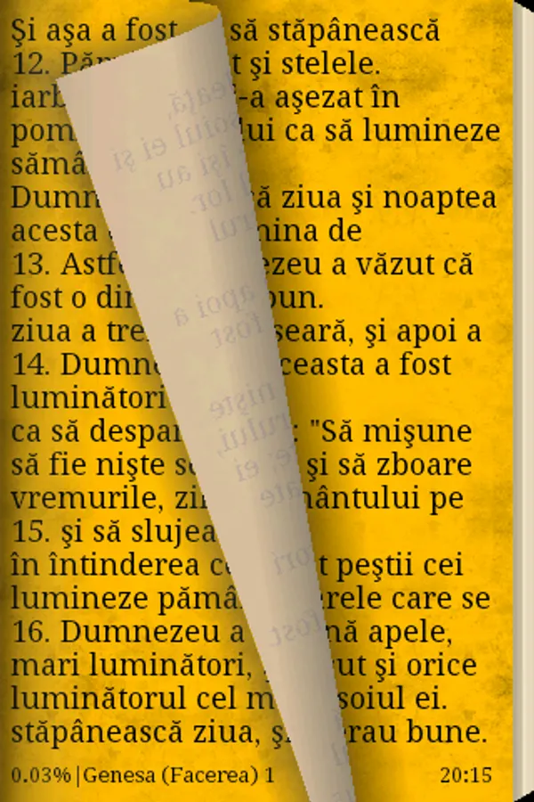 Aceasta aplicatie pastreaza forma de carte a Cuvantului lui Dumnezeu. Paginile au aspect de pergament si permite schimbarea culorii de fundal.