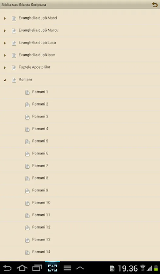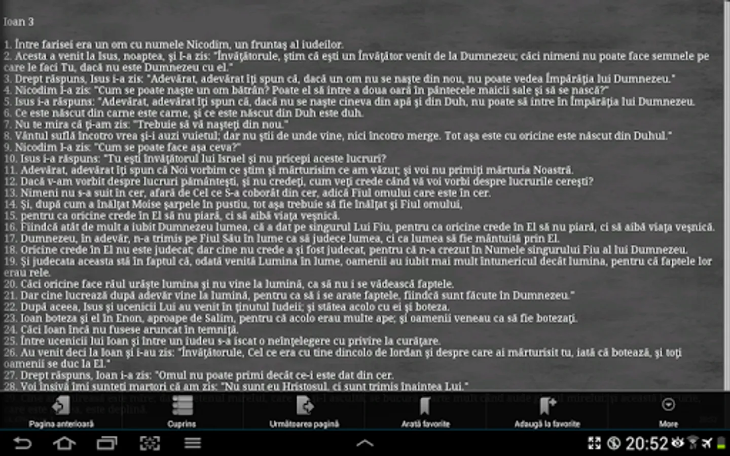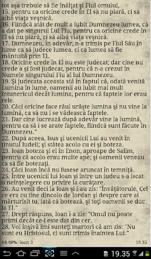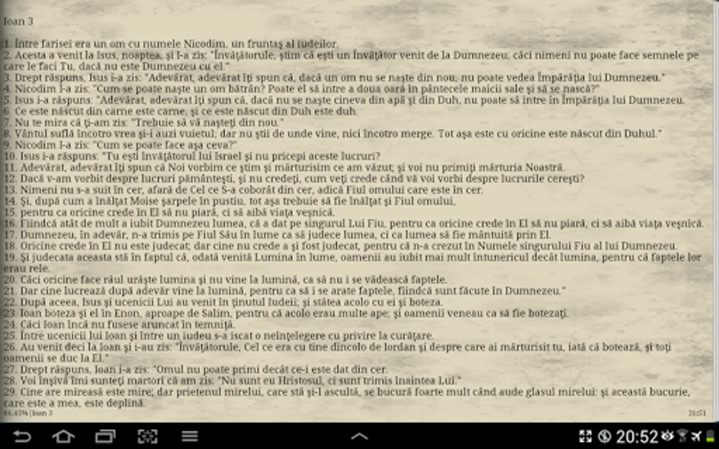 Aceasta aplicatie pastreaza forma de carte a Cuvantului lui Dumnezeu. Paginile au aspect de pergament si permite schimbarea culorii de fundal.