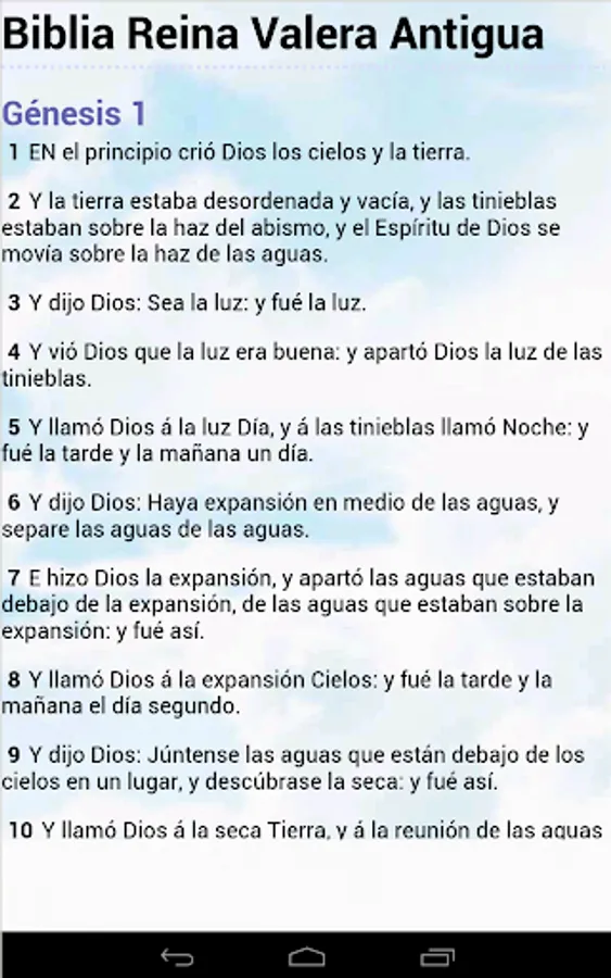 The Holy Bible in his version of the King James Version in Spanish. Each chapter is written in large letters, which will be adjusted automatically to the size of your screen for easy reading.