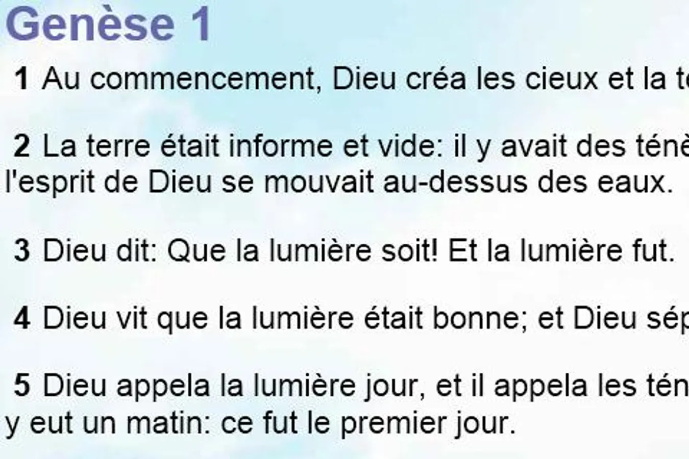 The Holy Bible King James Version of Lous. French. Each chapter is written in large letters, adjusted the size of your screen automatically for easy reading.