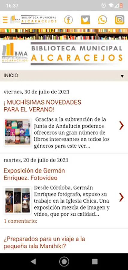 Find out about new acquisitions through the Alcaracejos library application.