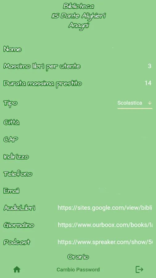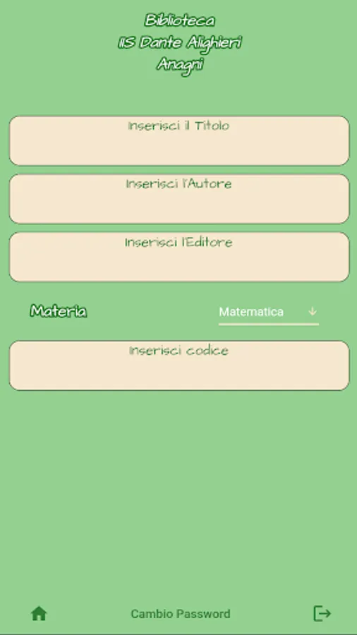 Through this app it is possible to manage the digital library "Biblioteca IIS Anagni". Among the various possibilities, the "admin" user can: