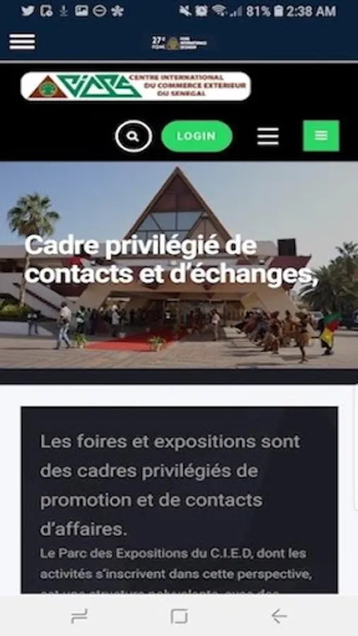 Suivez en Direct via Live Streaming, la Foire internationale de Dakar, de 10 heures a 20 heures en HD et en continu, grace au partenariat entre le CICES (Centre International du Commerce Exterieur au Senegal) et Bichri Technologies International (USA)