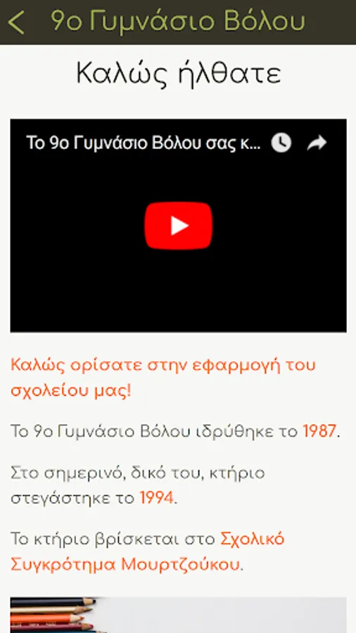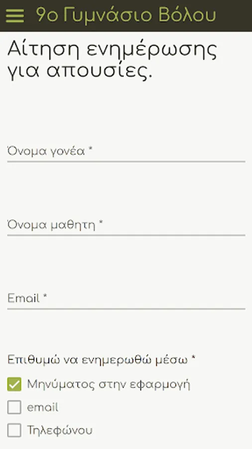 Apply to update parents and teachers from the 9th Gymnasium Volos.