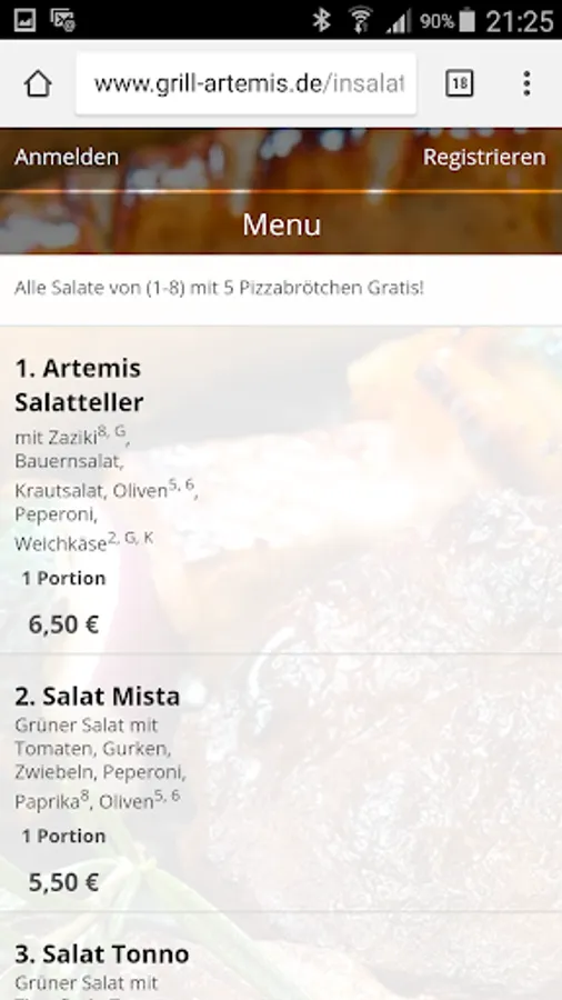 Order with this application or http://www.grill-artemis.de/ different pizzas, grilled dishes or pastry specialties. In addition there is a suitable snack, vegetarian dishes and drinks. If Schnitzel is one in focus, can choose between a breaded and grilled cutlet or between mushrooms, asparagus and fried onions.