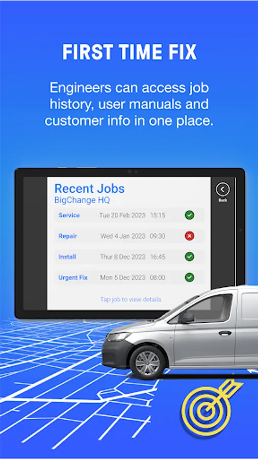 BigChange is the all-in-one Job Management System helping field service businesses win more work, take control of their operations and deliver customer delight. Bringing customer relationship management (CRM), job scheduling, live tracking, mobile app, job finance and business intelligence into one simple-to-use system, BigChange liberates you from inefficient paper-based processes and the complexity of managing multiple different systems. Loved by office and field teams alike, our customers are achieving industry-leading results and return on investment. The BigChange team is committed to customer success, and no matter your sector or whether you have a field-based workforce of 10 or 10,000, we’re here to make a big difference to the way you work and help your business achieve unstoppable success.