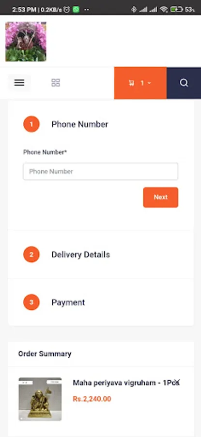 Maha Periyava Gruham is the app for ordering spiritual products like brass statues, brass items and others. The user needs to provide their mobile number, email address and delivery address to place the order.