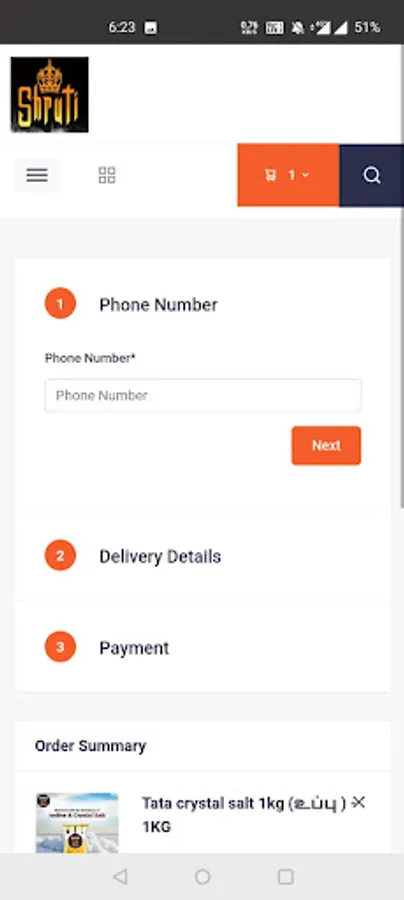 Shruti Pazhamudir is the app for ordering Fruits like Apple, orange, banana, water milion, mango, pomigranite, and others. The user needs to provide their mobile number, email address and delivery address to place the order.