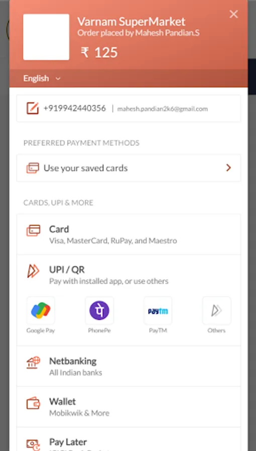Varnam Supermarket is the app for ordering Groceries like Rice, Wheat, Snacks, Pulses, Spices, Dhalls and others. The user needs to provide their mobile number, email address and delivery address to place the order.