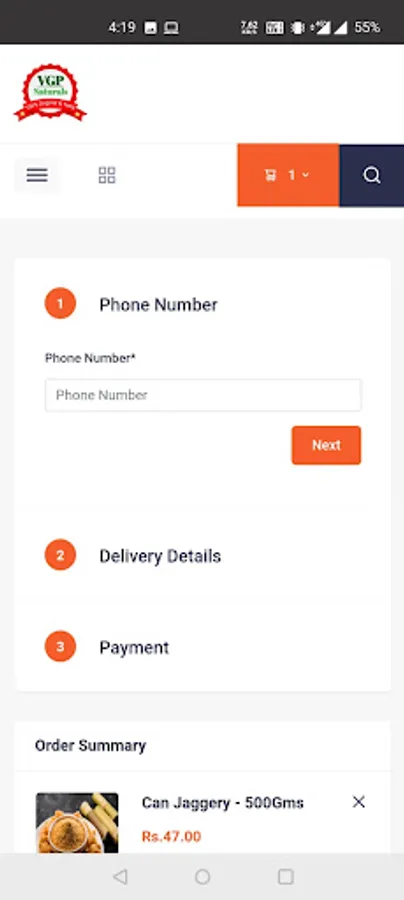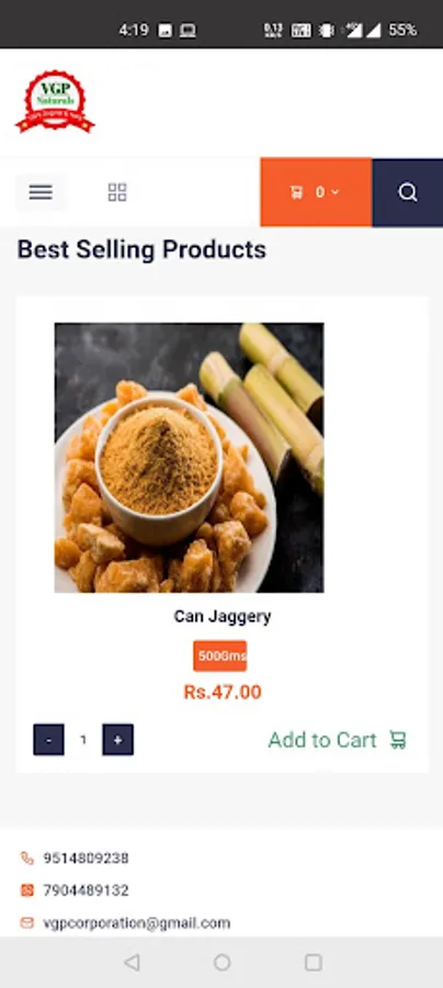 Vgp corporation is the app for ordering jaggary like can jaggery, Coconut jaggery, sugarcane jaggery and others. the user needs to provide their mobile number, email address and delivery address to place the order.
