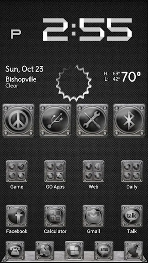 *To customize the Drawer, tap the drawer icon, select Edit->click on the icon->ADWTheme Icon Packs ->Screwed Steel->Choose icon.