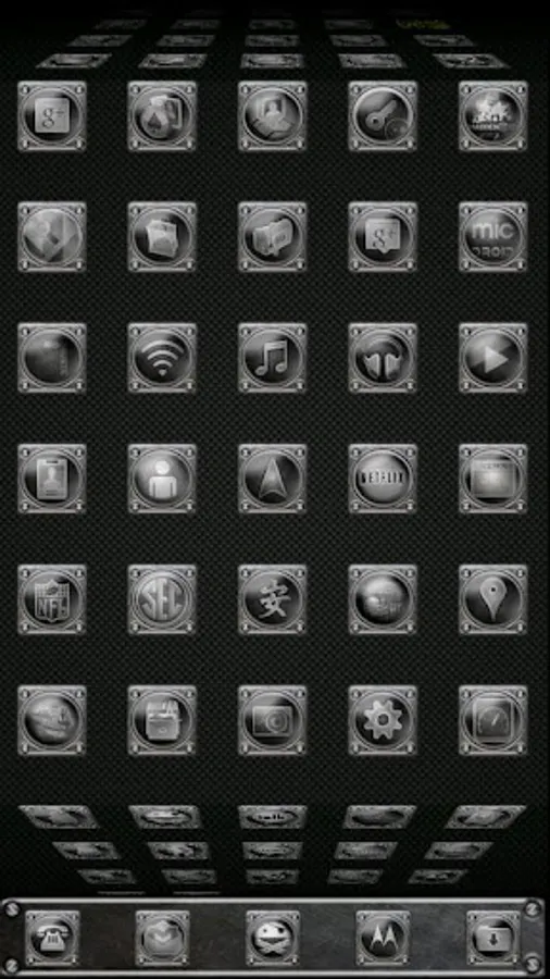 *To Change dockbar (ADW EX Only), go to ADW Settings->UI Settings->Main Dock->Dock Background->Custom...->BigDX Screwed Steel->Choose the one you like