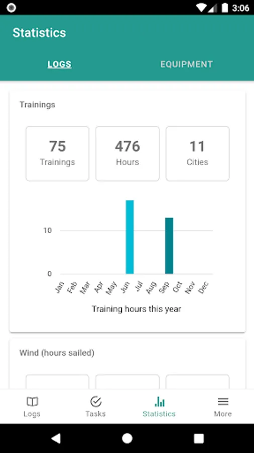 The statistics page helps you see your trainings in context. Did you sail more in strong or light winds? How are your sails doing, are they still in good condition? How happy are you with your upwind performance? The answers are all here!