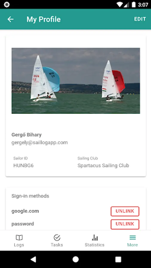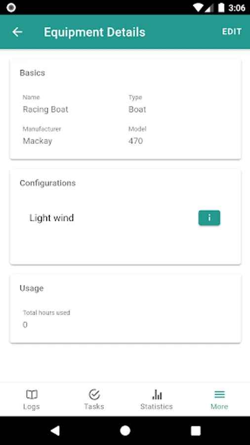 Do you really know how much your equipment is used? In the Equipments menu you can manage your boats, sails and other accessories. You can even create settings, such as 'Light wind' for your equipment. This is handy when you need to decide which one to take to the regatta.