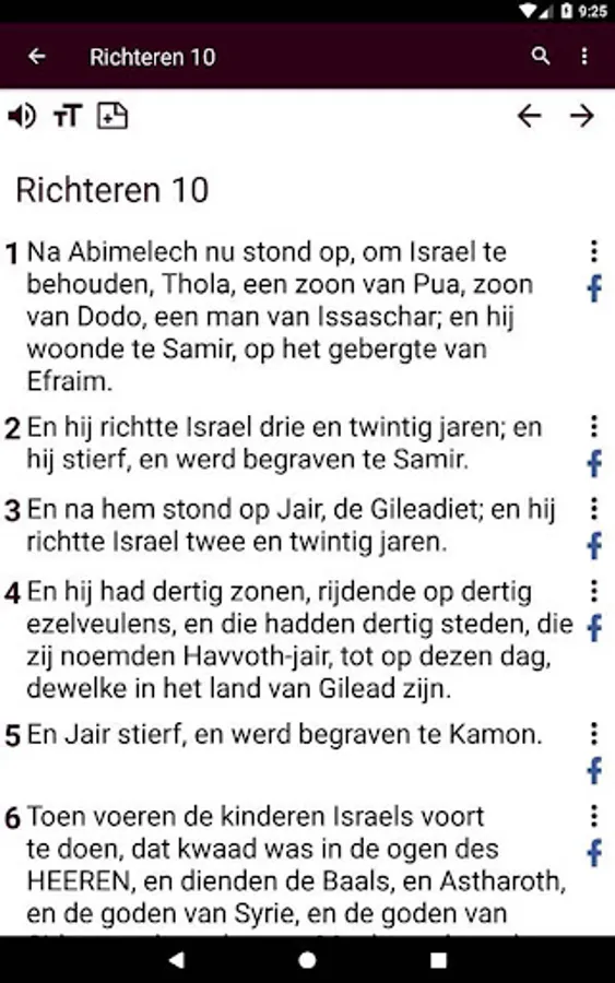 Our app contains the complete Statenvertaling Bijbel 1619 (DSV) with the Old and the New Testament. The Statenvertaling Bijbel is the first official translation of the Bible in Dutch, translated directly from the original biblical languages: Hebrew, Aramaic, and Greek.