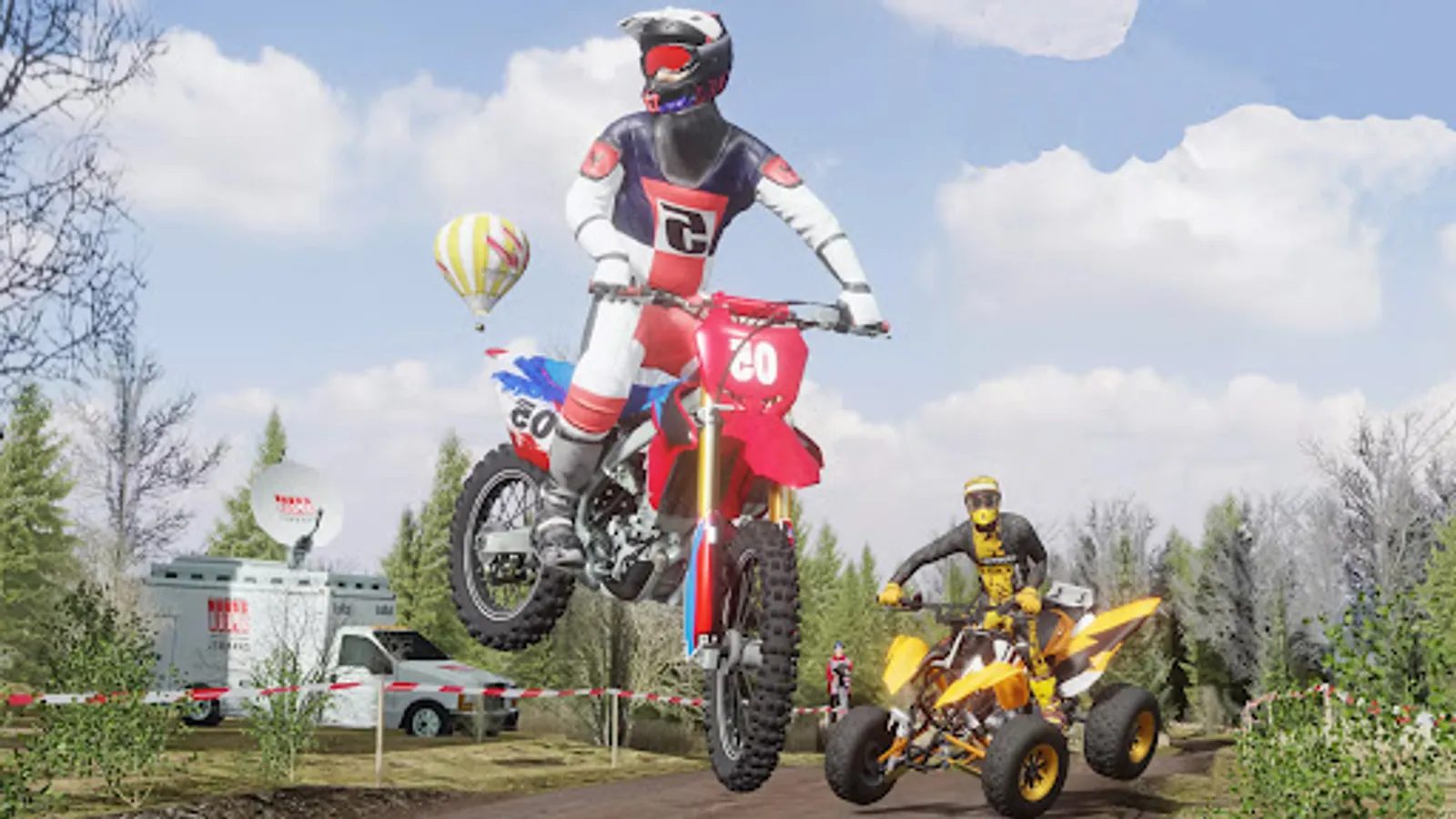 Jump and fly on the bike above trampolines. Bikes extreme riding. BMX and moto traffic driving simulator.