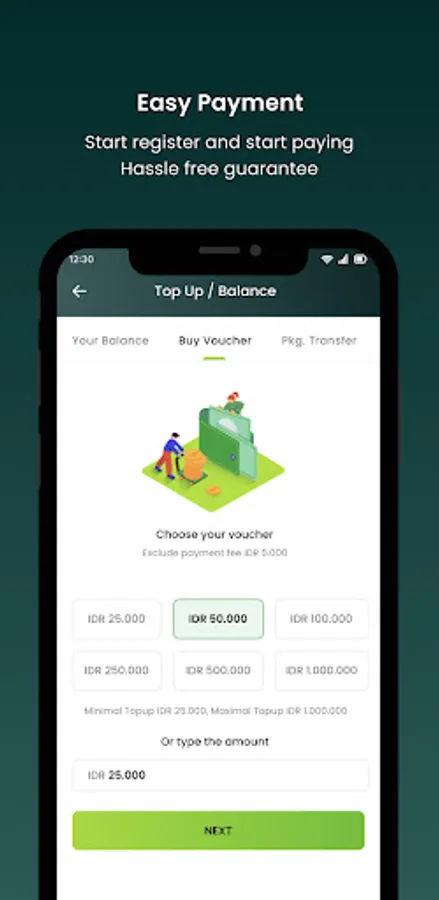 - Instant payment from the application