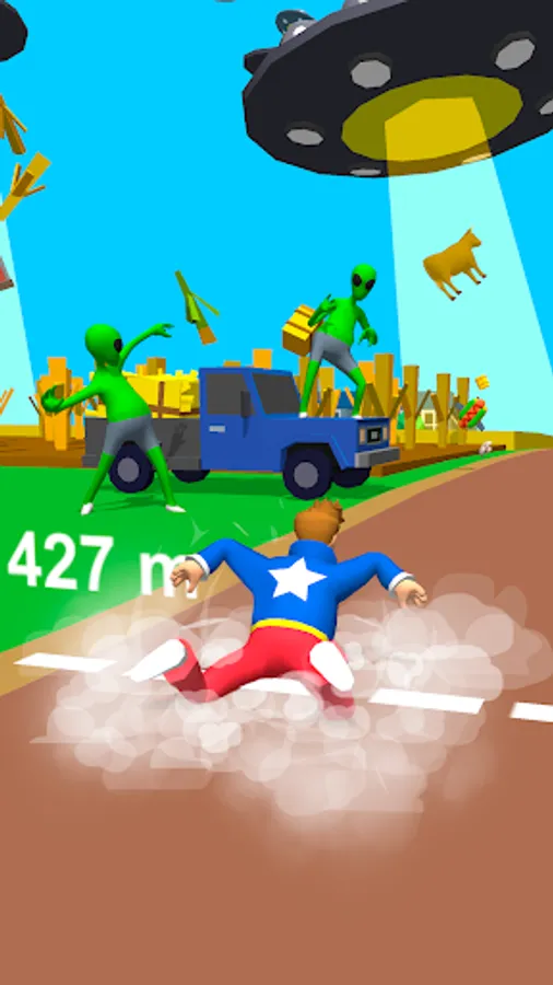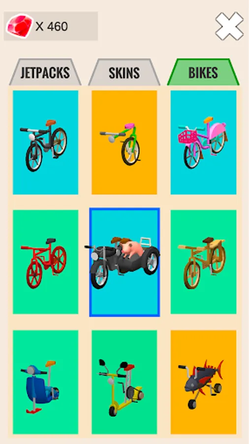 The Bike Hop controls are super easy! Tap to start cycling, tap again to speed up, and then tap one more time to jetpack jump from the ramp! Tap, tap, tap multiple times to use your jetpack flying over hills, cows, motorcycles, carts, and even entire cities. Use the jetpack fuel wisely and do not fall!