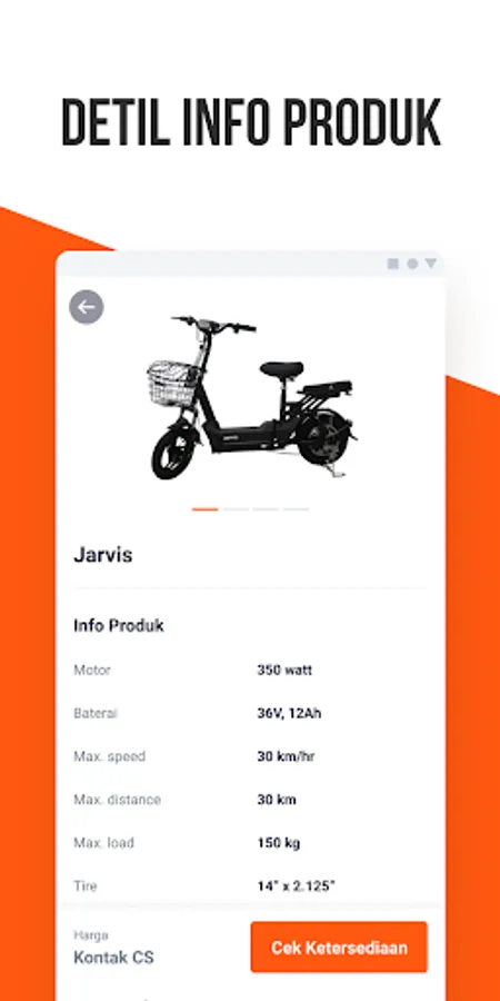 a. Informasi spesifikasi produk dan fitur dari sepeda listrik Jarvis