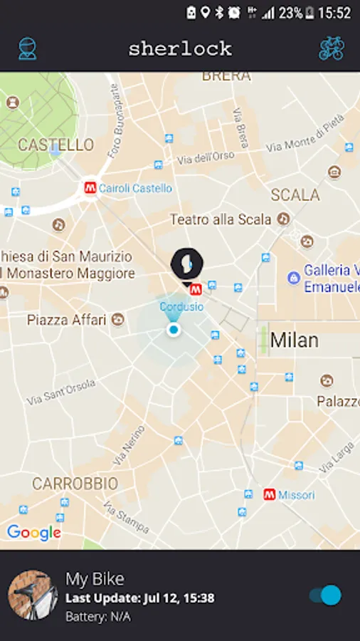 With Sherlock Bike you can create a profile for your bicycle with photos, model and details and pin the parking position on the map so that you can find it later.