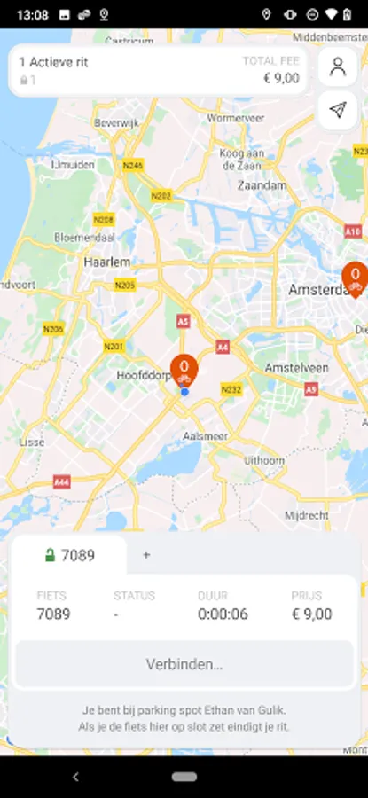 5. Parkeer je fiets bij de parking spot en beëindig je rit in de app.