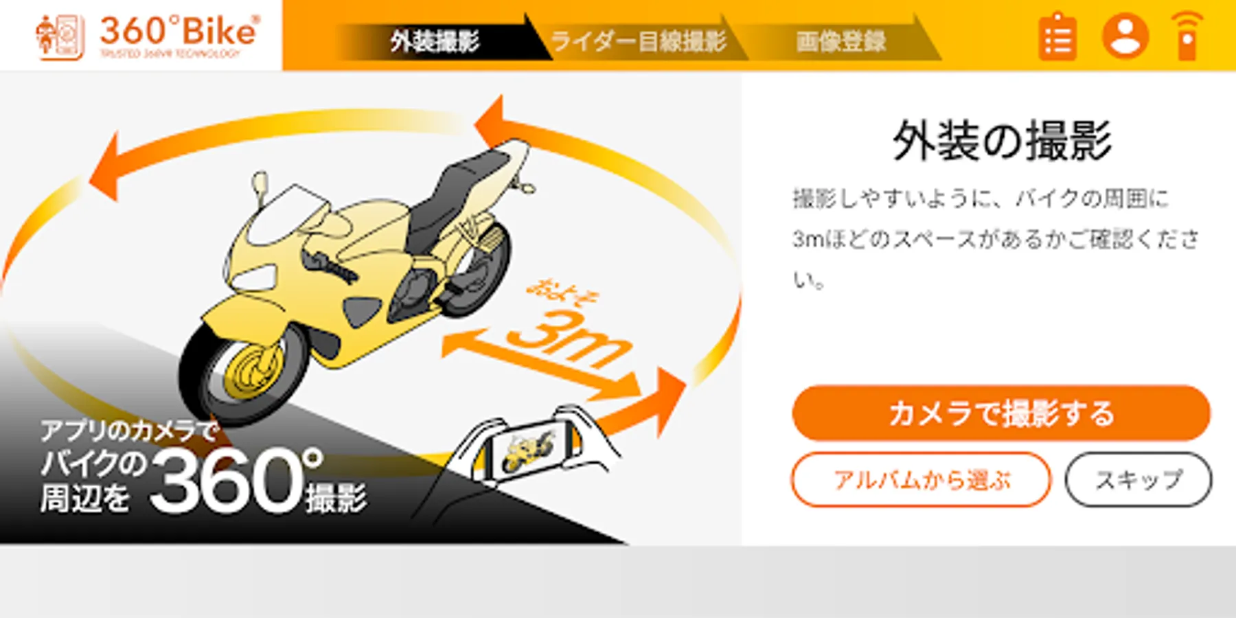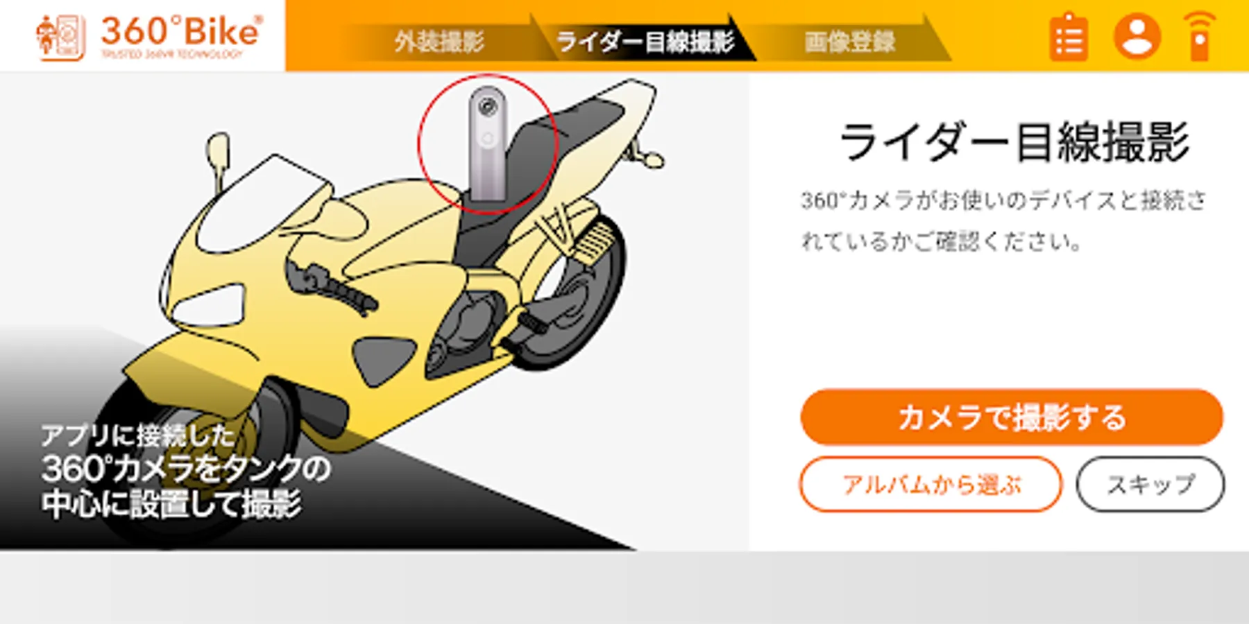 You can take panoramic shots from the rider's perspective using remote control using the app.