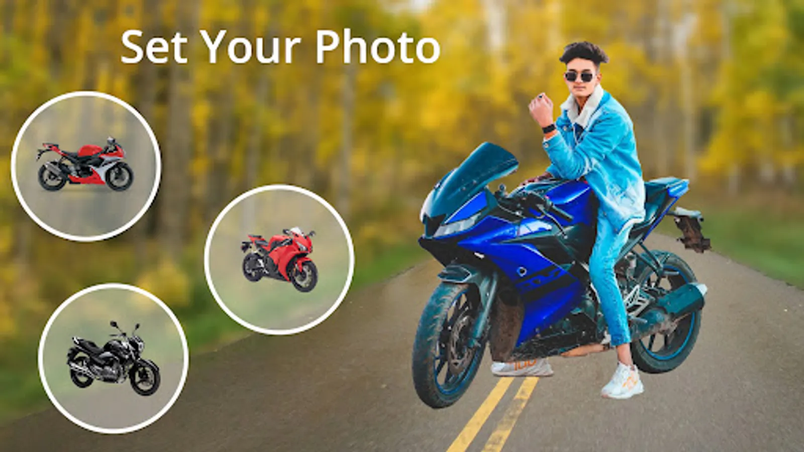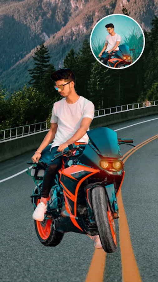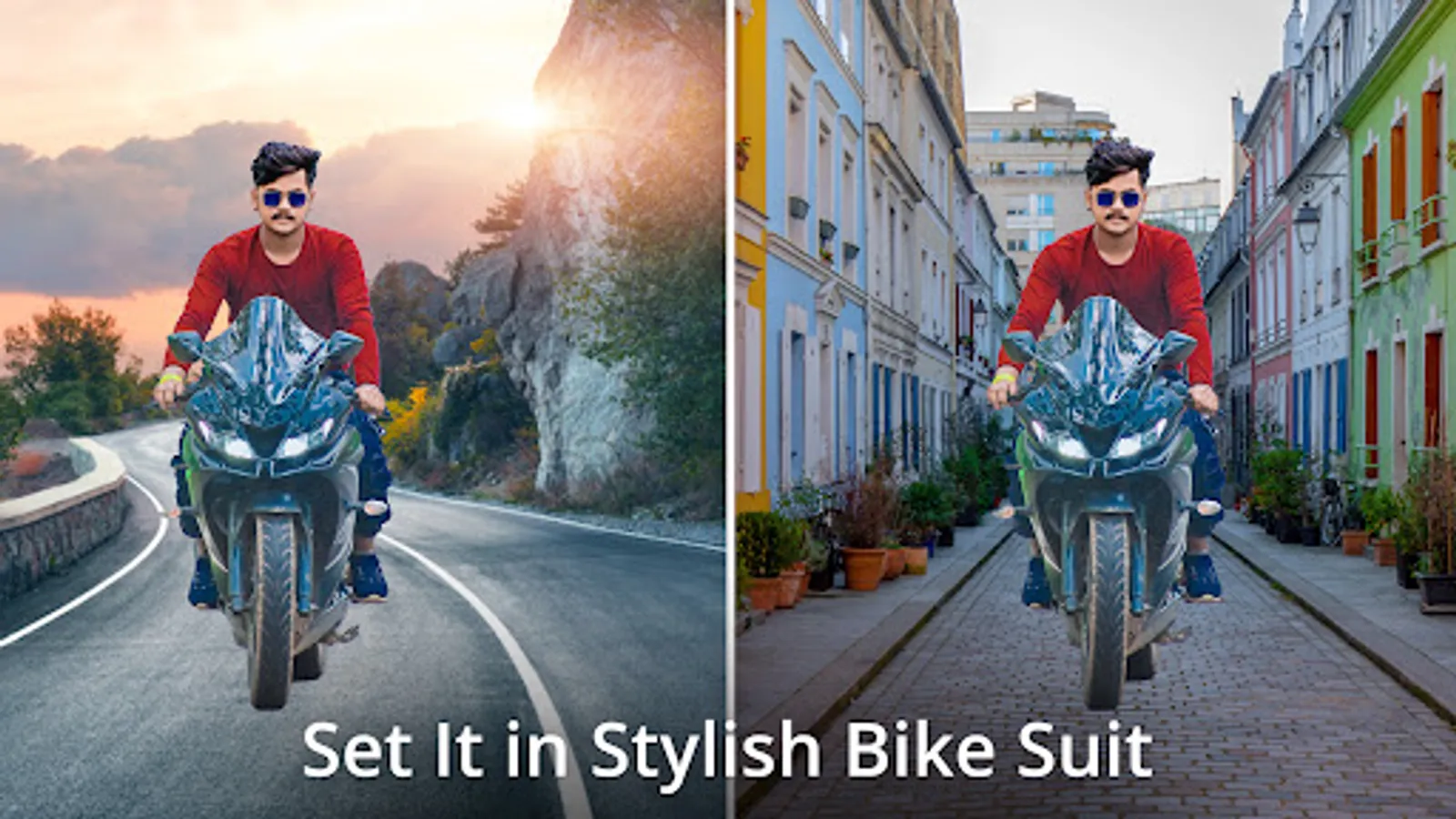Man Bike Rider Photo Editor is a photo editor app with various bike photo suits, and Backgrounds.