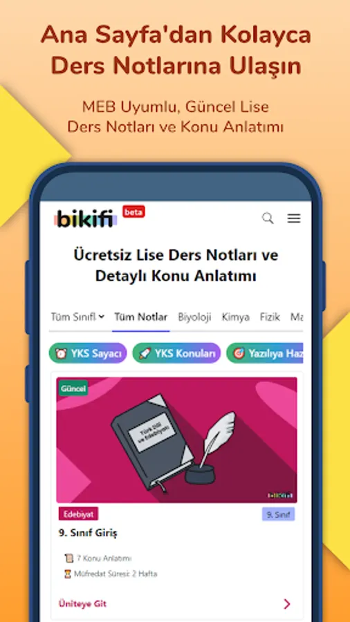 Lecture notes published in Bikifi are prepared in a way to follow the unit system in the textbooks in order to facilitate the follow-up of the students. When students choose the unit they want to study, they can see all the content written about the unit they have chosen.