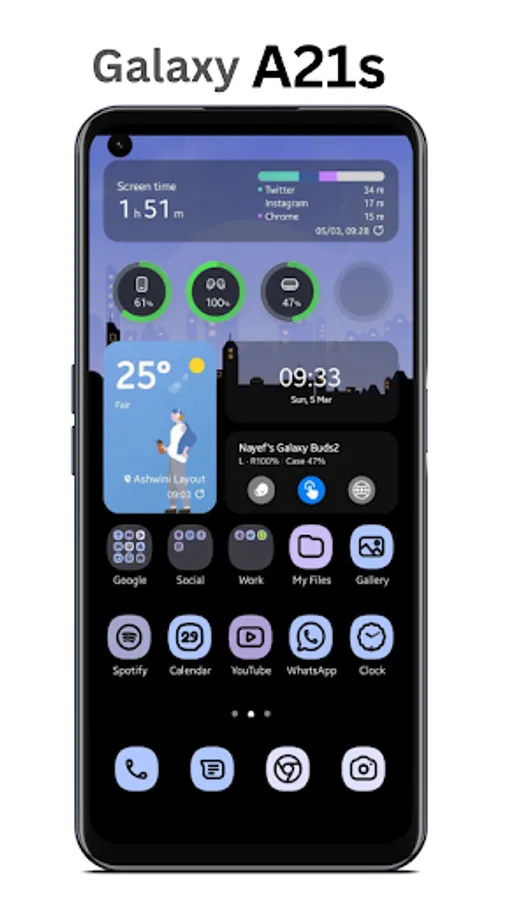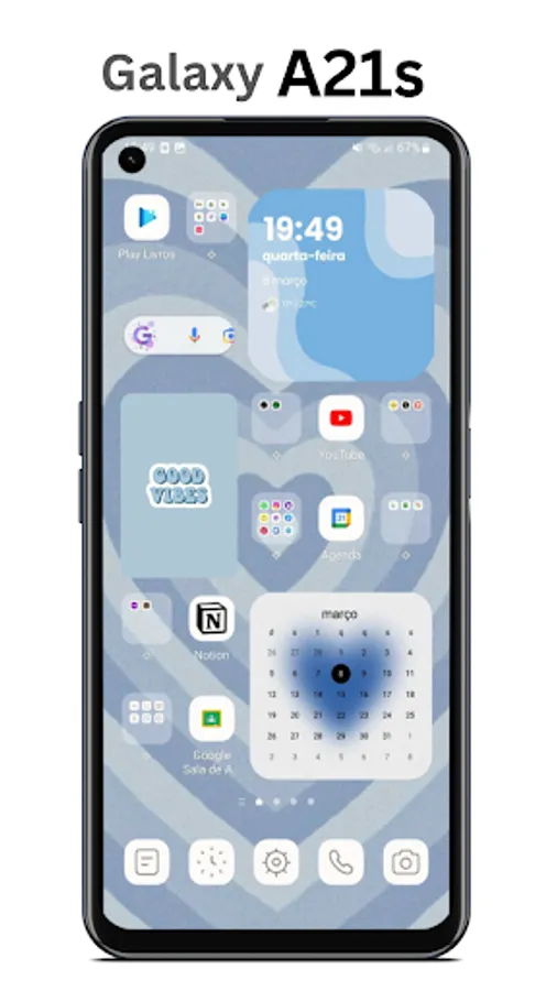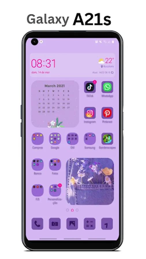 Galaxy 21s themes and launchers let your android phone run smoother and smarter, whereas at a similar time, offers you an ideal expertise. we've all of the foremost lovely themes you wish. Apply your favorite theme, launcher at any time and show it off on your phone. download the Theme for Galaxy A21s currently to have a lot of stunning themes.