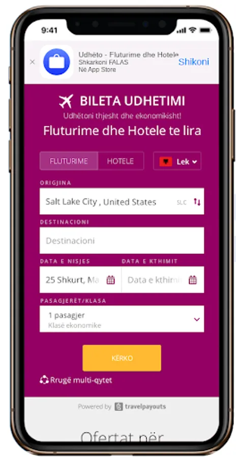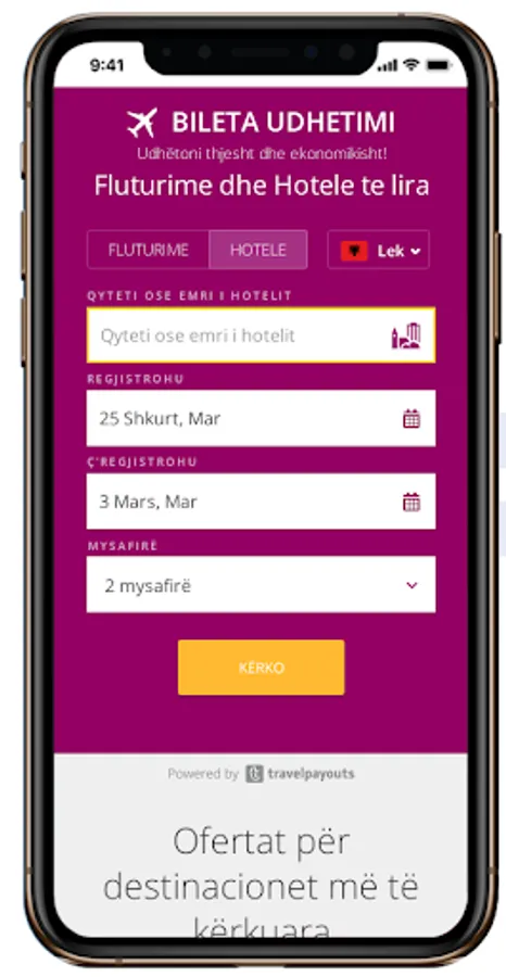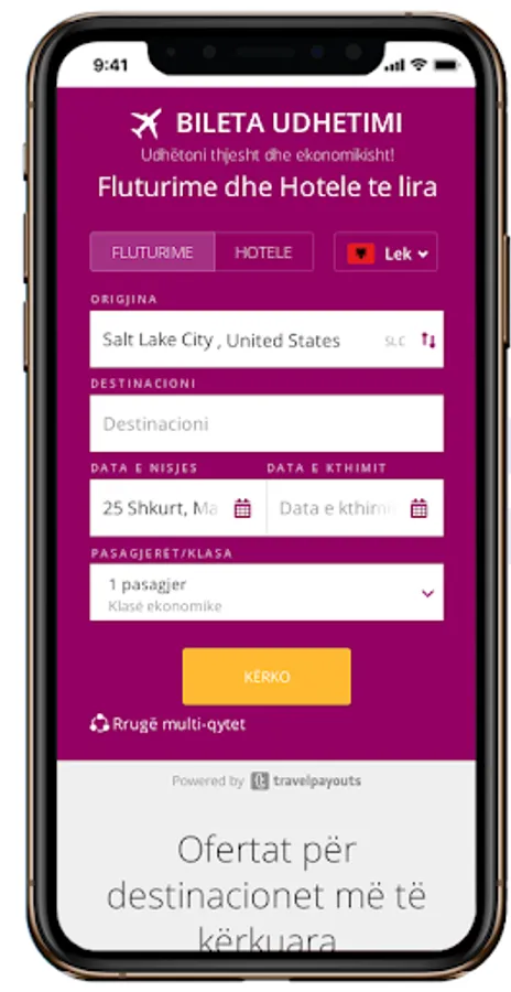 Ju sjellim më pranë destinacioneve më të dashura të Europës. Blerja e biletave dhe rezervimeve e hoteleve bëhen direkt në faqet e agjencive të tjera, dhe Biletaudhetimi.com nuk ka asnjë lidhje direkte me ta. Platforma e Biletaudhetimi.com shërben si motor kërkimi për të krahasuar të gjitha alternativat e mundshme të biletave të ofruara nga 1000+ kompani ajrore dhe nga mbi 200.000 hotele, duke ju dhënë mundësinë që ju të gjeni më të lirën e asaj që kërkoni. Bileta te lira avioni, hotele te lira, rezervime hotelesh, Low Cost Tickets, Bileta Avioni, Airalbania