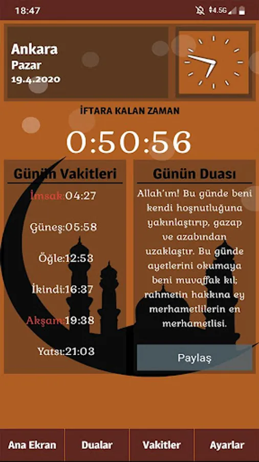Our internet-free imsakiye, which we have prepared for the month of Ramadan, has been published as of April 30. You can follow the daily prayer times with the application. You can always see how much time is left for iftar. You can see at any time how much time is left for sahur.