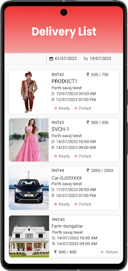Rent Featuters : Rent Invoice, Sale Invoice, PickUp, Return, Wash, Repair Vourchers with sms & email notofications and live tracking and much more...