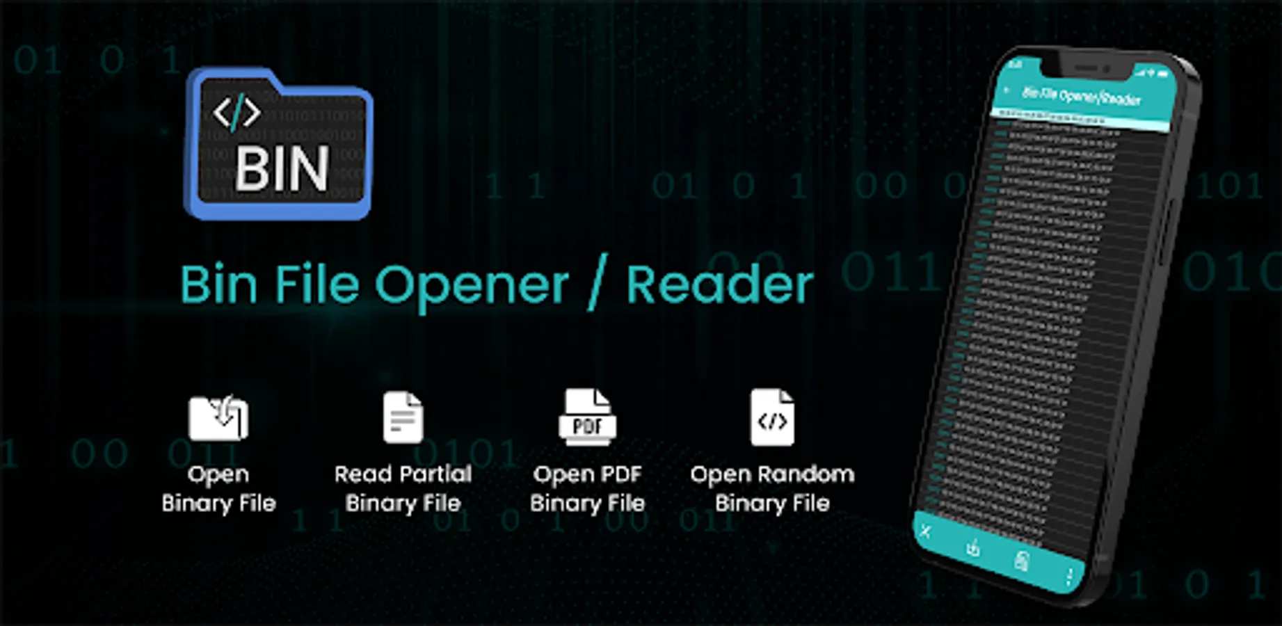 Bin File Opener and Viewer are used to open bin files. Bin File Reader allows the user to Bin File Opener - Viewer is one helpful app that allows the user to open/view binary files stored in the device. The Bin File Editor permits the user to store information in the form of binary format and Edit Bin Files.